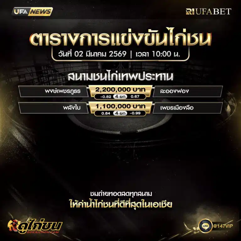บนแพลตฟอร์มอย่าง Dokaichon ผู้เล่นสามารถดูรายละเอียดเบื้องต้นของคู่สำคัญในศึกไก่ชนเงินล้านได้ เช่น ฟอร์มการชนย้อนหลัง สถิติแพ้–ชนะ ลักษณะสายพันธุ์ และสนามที่ใช้แข่ง ทำให้การติดตามไม่ใช่แค่ลุ้นตามเสียงเชียร์ แต่มีข้อมูลประกอบการวิเคราะห์อย่างชัดเจน หากต้องการต่อยอดไปสู่การ แทงไก่ชนออนไลน์ ก็สามารถใช้ข้อมูลเหล่านี้ช่วยประเมินความได้เปรียบเสียเปรียบของแต่ละฝั่งได้ดีกว่าการเดาแบบลอย ๆ